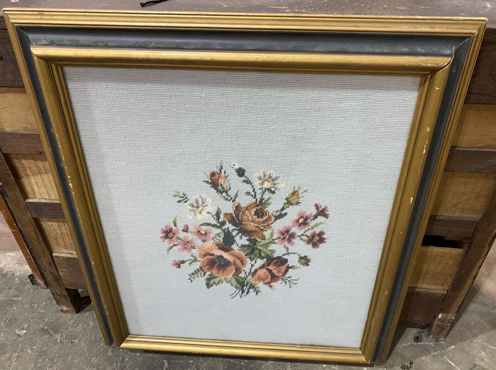 Framed Floral Still Life Cross Stitch 26" x 29" Framed Floral Still Life Cross Stitch 26" x 29"