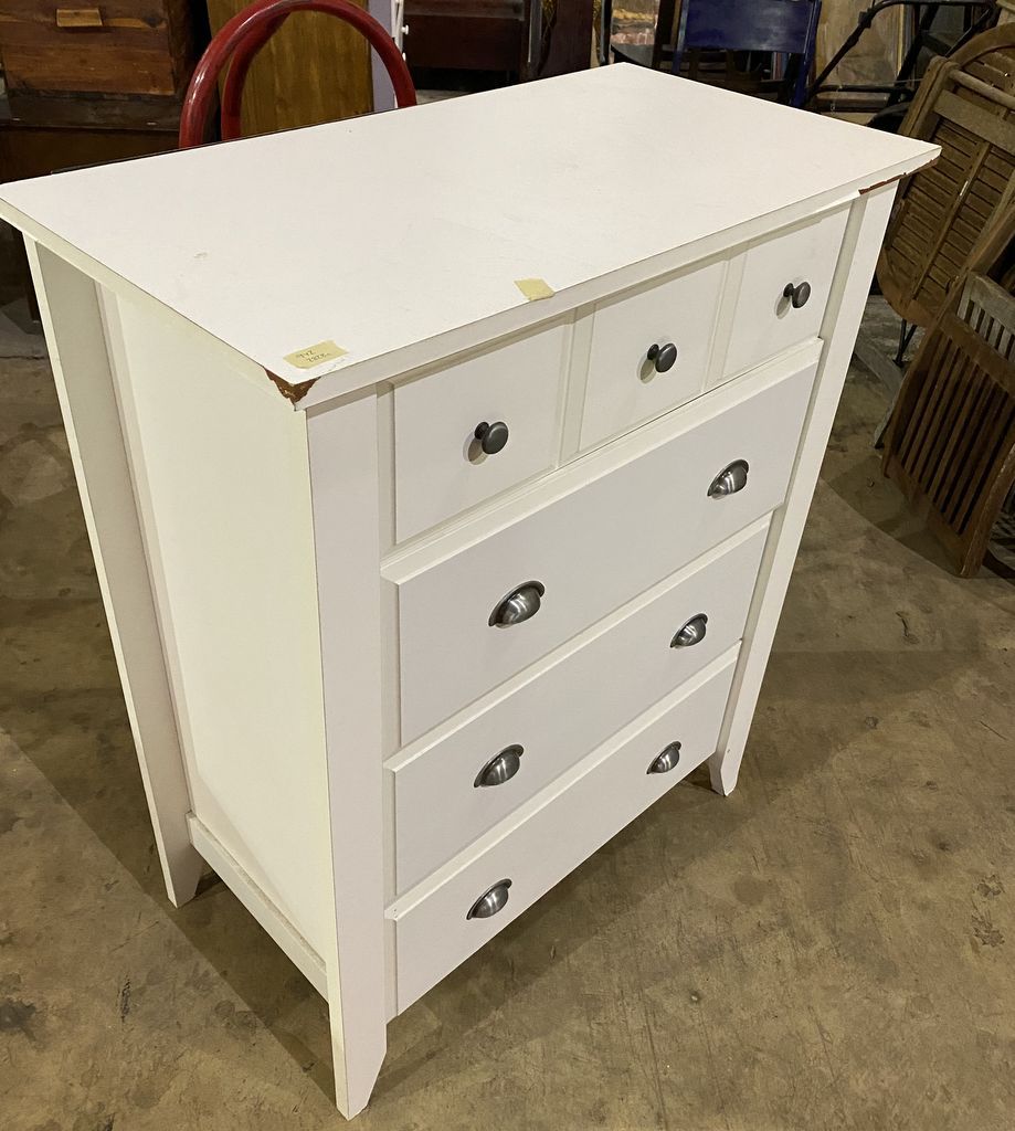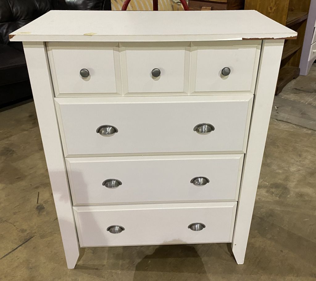 White Pressed Wood Chest of Drawers, needs work, 42"h., 35"w. White Pressed Wood Chest of Drawers, needs work, 42"h., 35"w.