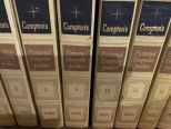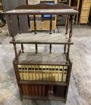 Vintage Wood Bookcase, worn spots, has book collections., 46"h., 23"w. Row 13 Vintage Wood Bookcase, worn spots, has book collections., 46"h., 23"w. Row 13
