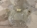 959 Group of Vintage Glass Compote, Punch Bowl Stand, Knife Rest, Bell, and Plate