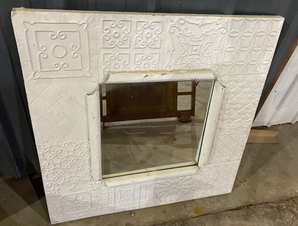 Decorative Metal White Painted Mirror, 40"h. Decorative Metal White Painted Mirror, 40"h.