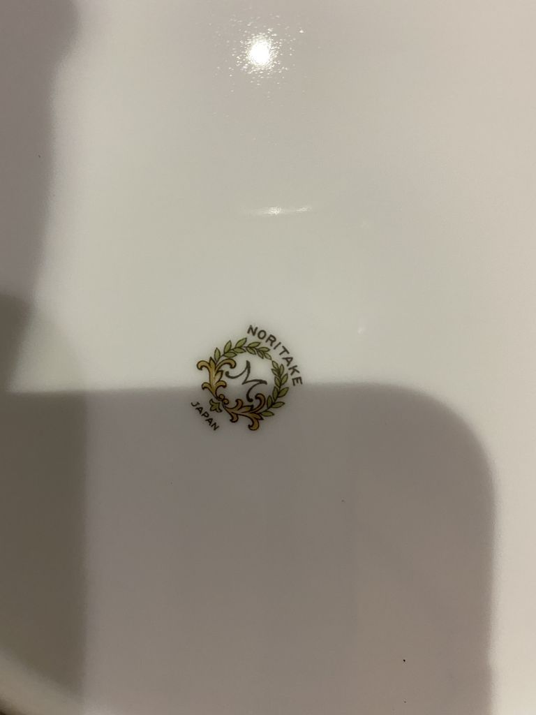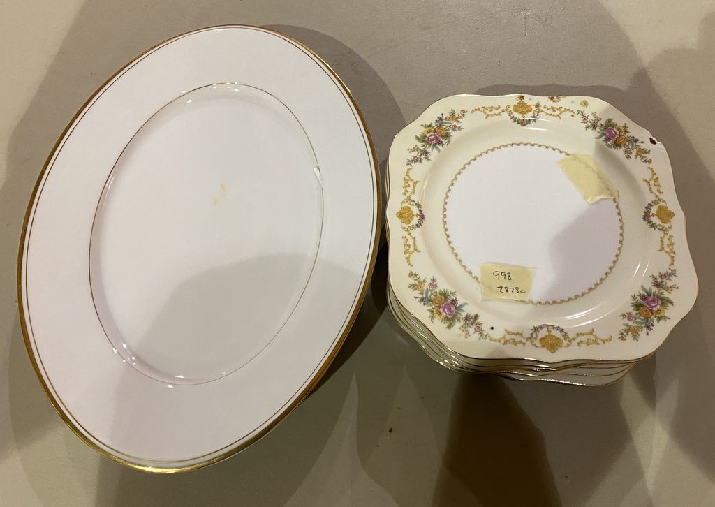 Porcelain Platter and Noritake Salad Plates, Location Metal Shelves Porcelain Platter and Noritake Salad Plates, Location Metal Shelves