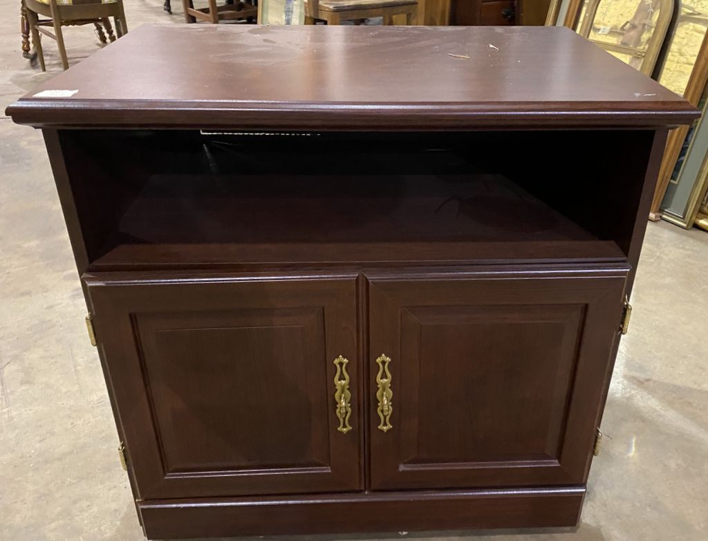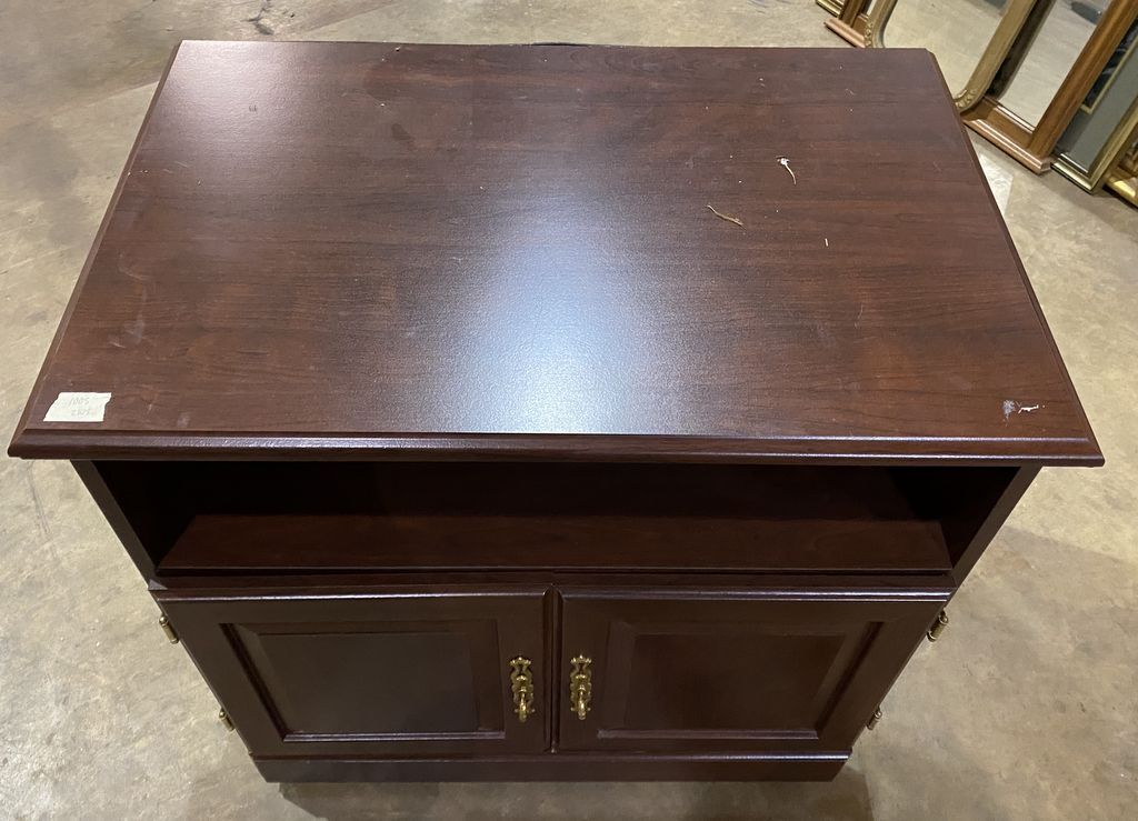 Cherry TV Rolling Stand, pressed wood, 28"h., 30"w. Row 11 Cherry TV Rolling Stand, pressed wood, 28"h., 30"w. Row 11