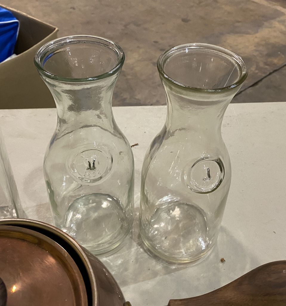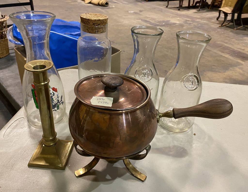 1016 Glass Milk Jars, Fondue Pot, and Brass Candle Stick