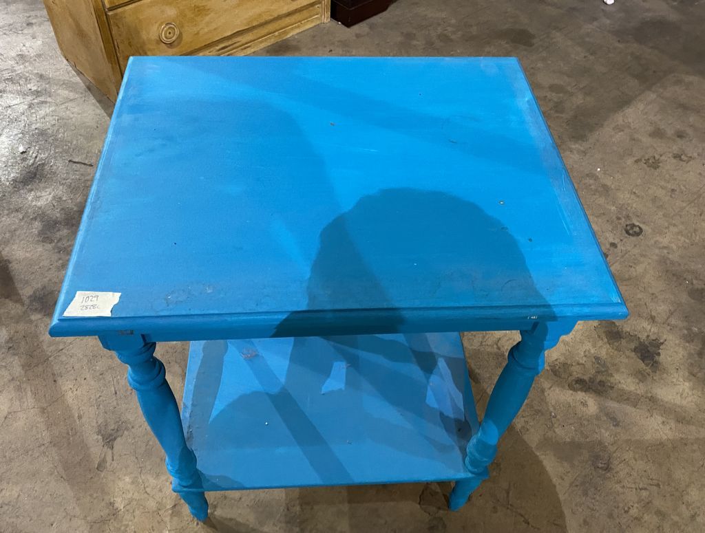 Painted Wood Side Table, two tier, 20"h. 24"w. Row 15 Painted Wood Side Table, two tier, 20"h. 24"w. Row 15