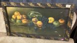 Framed Still Life Print, damaged, 15"h., 27"w. Framed Still Life Print, damaged, 15"h., 27"w.
