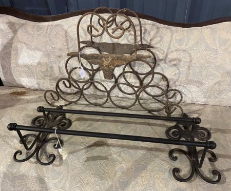 1052 Rustic Iron Wine Holder and Metal Towel Rack