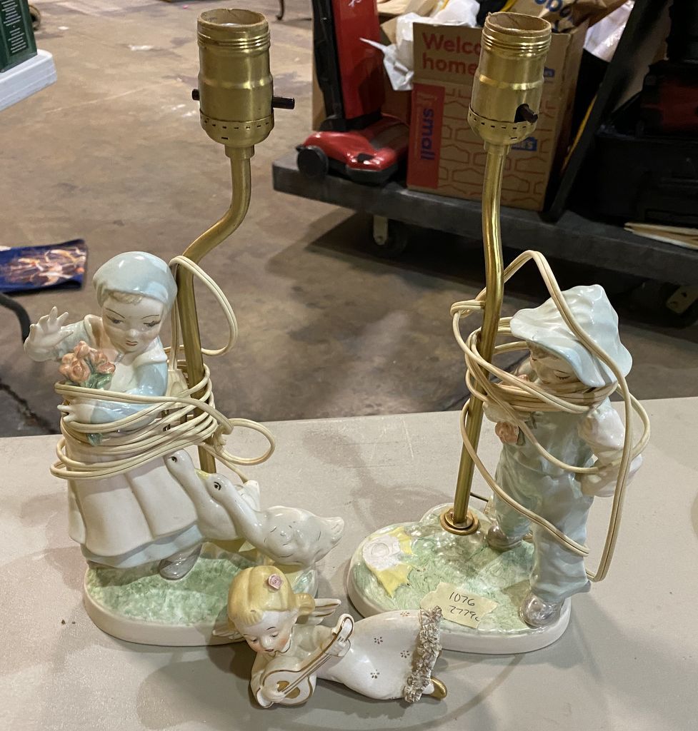 Pair of Ceramic Figural Lamps, 14"h. one damage Location Metal Shelves Pair of Ceramic Figural Lamps, 14"h. one damage Location Metal Shelves