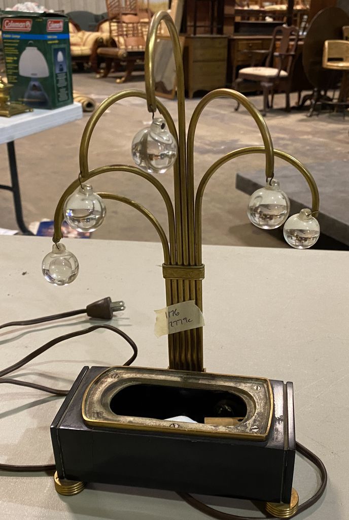 Art Deco Style Tree Lamp, missing center globe, 13"h Location Metal Shelves Art Deco Style Tree Lamp, missing center globe, 13"h Location Metal Shelves