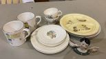 Vintage Porcelain Kids Plates and Cups, Location Metal Shelves Vintage Porcelain Kids Plates and Cups, Location Metal Shelves
