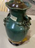 Pottery Vase Lamp, wood base, no shade, 26"h. Location Metal Shelves Pottery Vase Lamp, wood base, no shade, 26"h. Location Metal Shelves