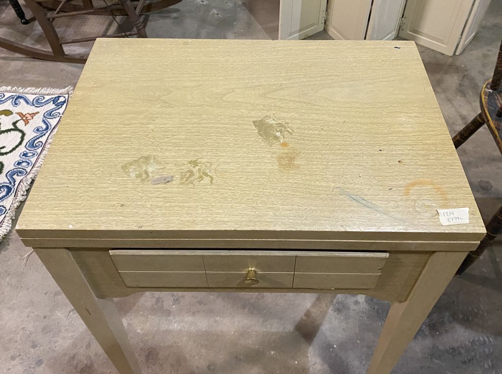 Oak Sewing Machine Stand, single drawer, on casters. 32"h., 23"w. Row 8 Oak Sewing Machine Stand, single drawer, on casters. 32"h., 23"w. Row 8