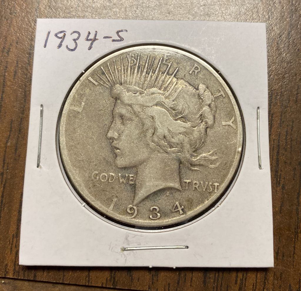 1934 S Peace Liberty Dollar, paper case, Location Office 1934 S Peace Liberty Dollar, paper case, Location Office