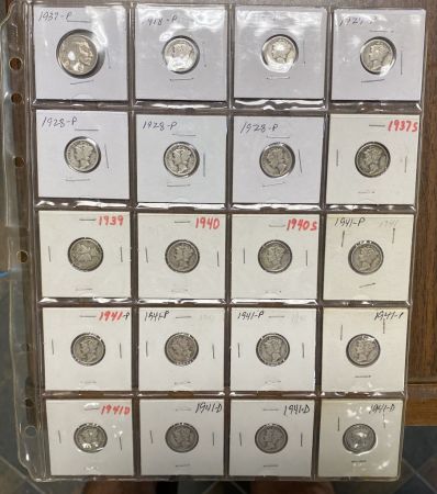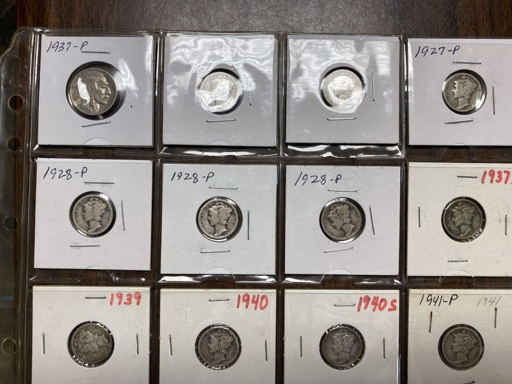 19 Mercury Dimes and 1 Buffalo Nickle, Location Office 19 Mercury Dimes and 1 Buffalo Nickle, Location Office