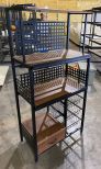 Modern Metal and Wood Kitchen Baker's Rack, has wear. 62"h., 30"w. Location Back Left Side Modern Metal and Wood Kitchen Baker's Rack, has wear. 62"h., 30"w. Location Back Left Side