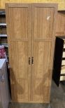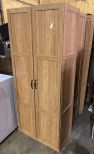 Pressed Wood Kit Storage Cabinet, needs tightening, 71"h., 29"w. Location Back Left Side Pressed Wood Kit Storage Cabinet, needs tightening, 71"h., 29"w. Location Back Left Side