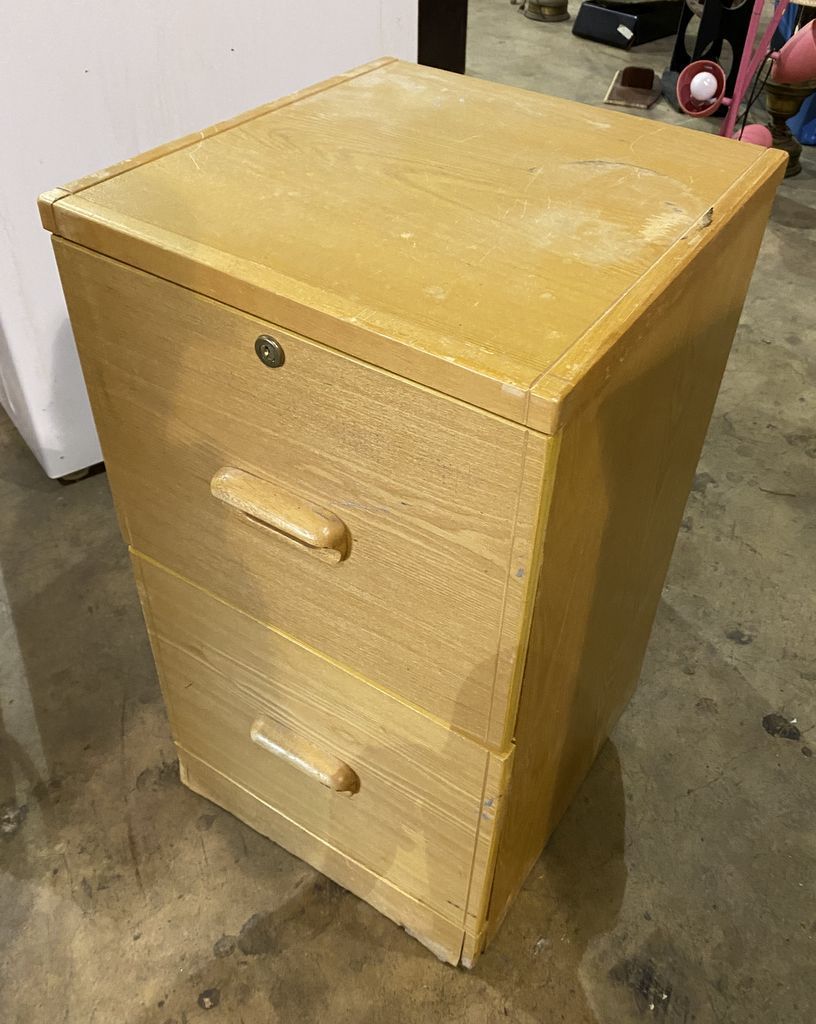 Modern Pine Two Drawer File Cabinet, 27"h., 15"w. Location Back Left Side Modern Pine Two Drawer File Cabinet, 27"h., 15"w. Location Back Left Side