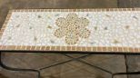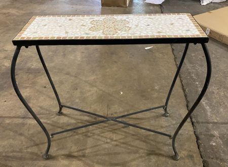 Mosaic Style Console Table, metal base. 30"h., 30"w. Location Back Left Side Mosaic Style Console Table, metal base. 30"h., 30"w. Location Back Left Side