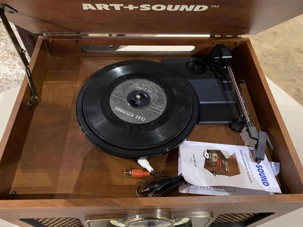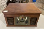 Radio, and record player, missing power cord. Location Metal Shelves Radio, and record player, missing power cord. Location Metal Shelves