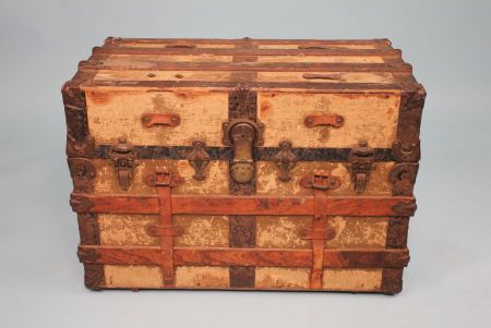 Fine Steamer Trunk with All Original Hardware, straps and rare covered internal storage tray, 22" h. x 32" w. Fine Steamer Trunk with All Original Hardware, straps and rare covered internal storage tray, 22" h. x 32" w.