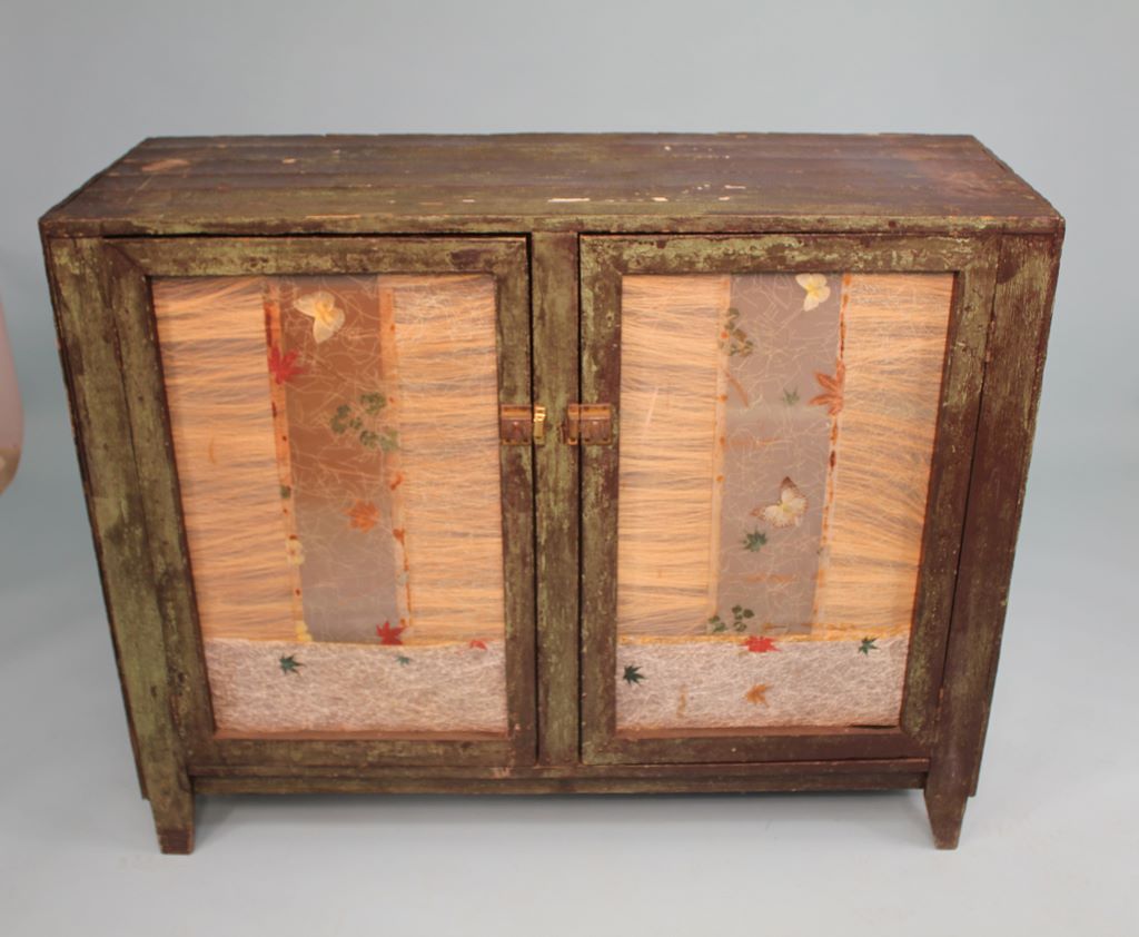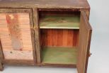 Primitive Pie Safe With Butterfly Screens, original paint, two painted art fiberglass cabinet doors with added latches, 39" h. x 49" w. Primitive Pie Safe With Butterfly Screens, original paint, two painted art fiberglass cabinet doors with added latches, 39" h. x 49" w.