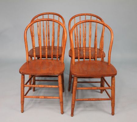 Set of Four Bent Wood Chairs with five spindle back, all hand made and turned, 32" h. Set of Four Bent Wood Chairs with five spindle back, all hand made and turned, 32" h.