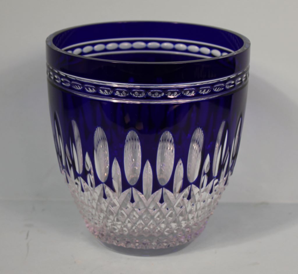 Cobalt Cut to Clear Sinead Christian Waterford Crystal Ice Bucket, 7 1/2 h., 7" W Cobalt Cut to Clear Sinead Christian Waterford Crystal Ice Bucket, 7 1/2 h., 7" W