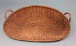 Large Woven Double Handled Basket, one side flat, one side raised; 38" w., 29" depth Large Woven Double Handled Basket, one side flat, one side raised; 38" w., 29" depth