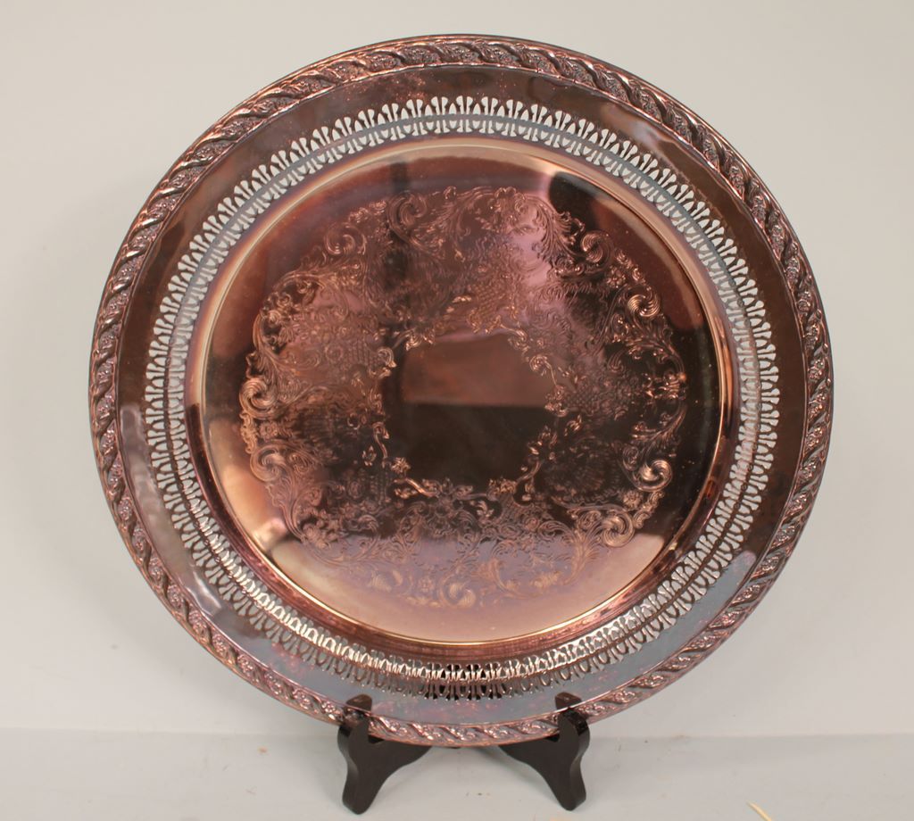 W. M. Roger and Sons Spring Flower Pattern Silverplate Tray, with pierced border, 12 1/4" dia. W. M. Roger and Sons Spring Flower Pattern Silverplate Tray, with pierced border, 12 1/4" dia.