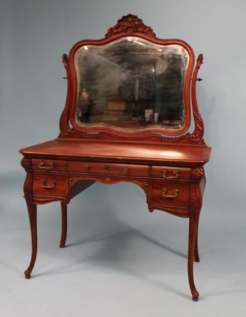 Very Fine Mahogany Dressing Desk with five drawers and beveled mirror. 61"h x 41"w x 21"d. Very Fine Mahogany Dressing Desk with five drawers and beveled mirror. 61"h x 41"w x 21"d.
