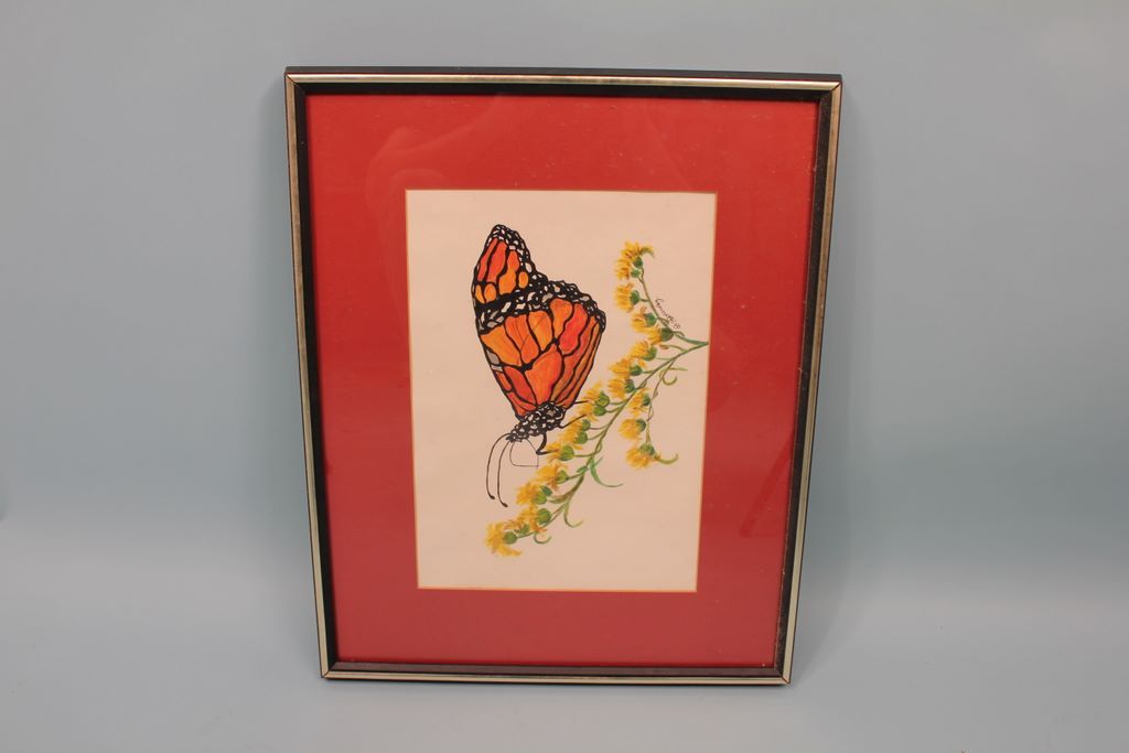 487 Watercolor Painting of A Butterfly and Flower, artist signed