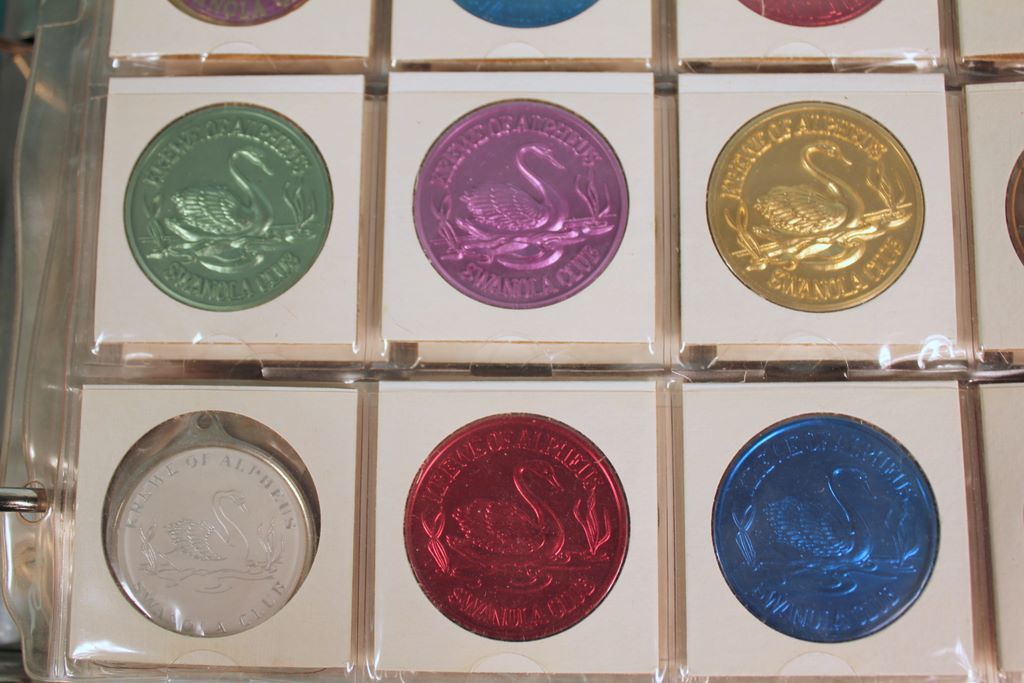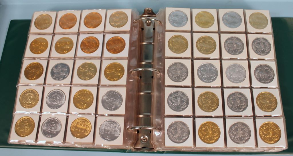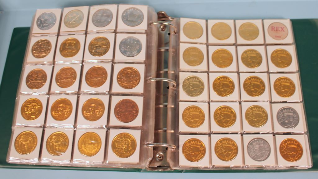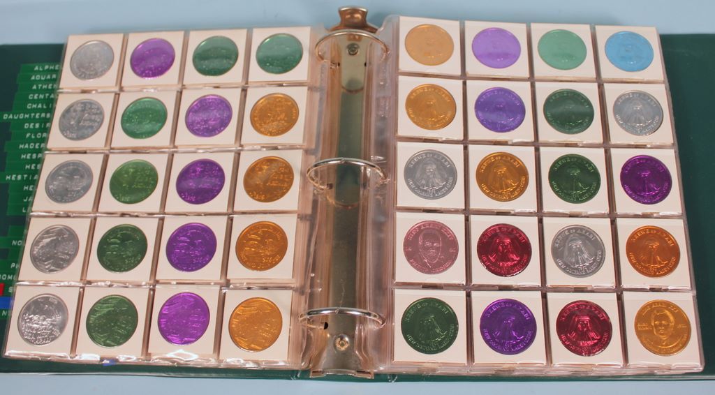 New Orleans New Doubloon Coins. Three books in this lot. First book is 1970's approximately 375 in this book. These are parades that have disbanded. Daughters of Eve, 1974 Profiles in Courage. Second book approximately 375 in this book, copies of 1857. Proteus, Comus, Hermes, Momus, Rex (1960's). Third book is volume 2 of disbanded parades. Approximately 200 multi-color aluminums, Krewe of Alpheus, Arabi, Anthena, and many more. New Orleans New Doubloon Coins. Three books in this lot. First book is 1970's approximately 375 in this book. These are parades that have disbanded. Daughters of Eve, 1974 Profiles in Courage. Second book approximately 375 in this book, copies of 1857. Proteus, Comus, Hermes, Momus, Rex (1960's). Third book is volume 2 of disbanded parades. Approximately 200 multi-color aluminums, Krewe of Alpheus, Arabi, Anthena, and many more.