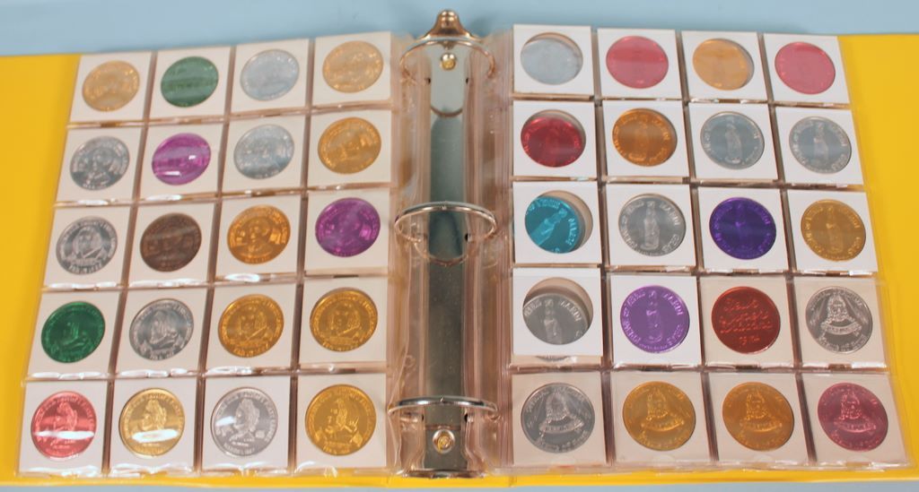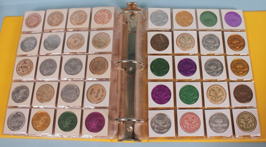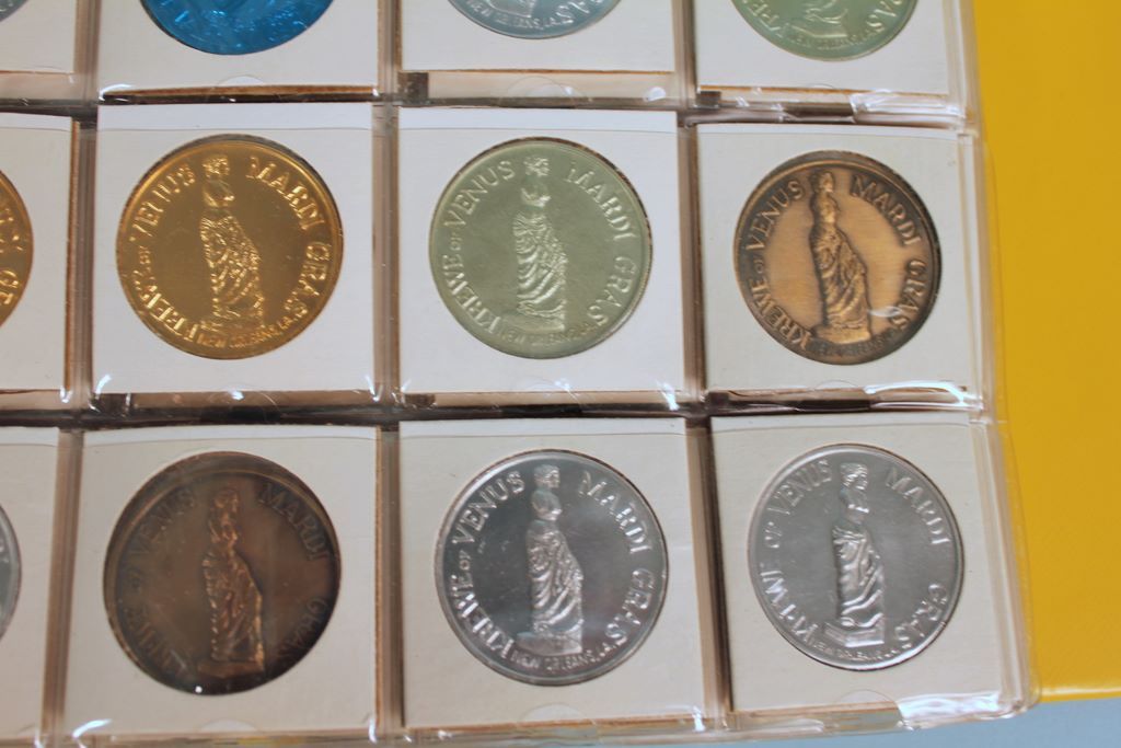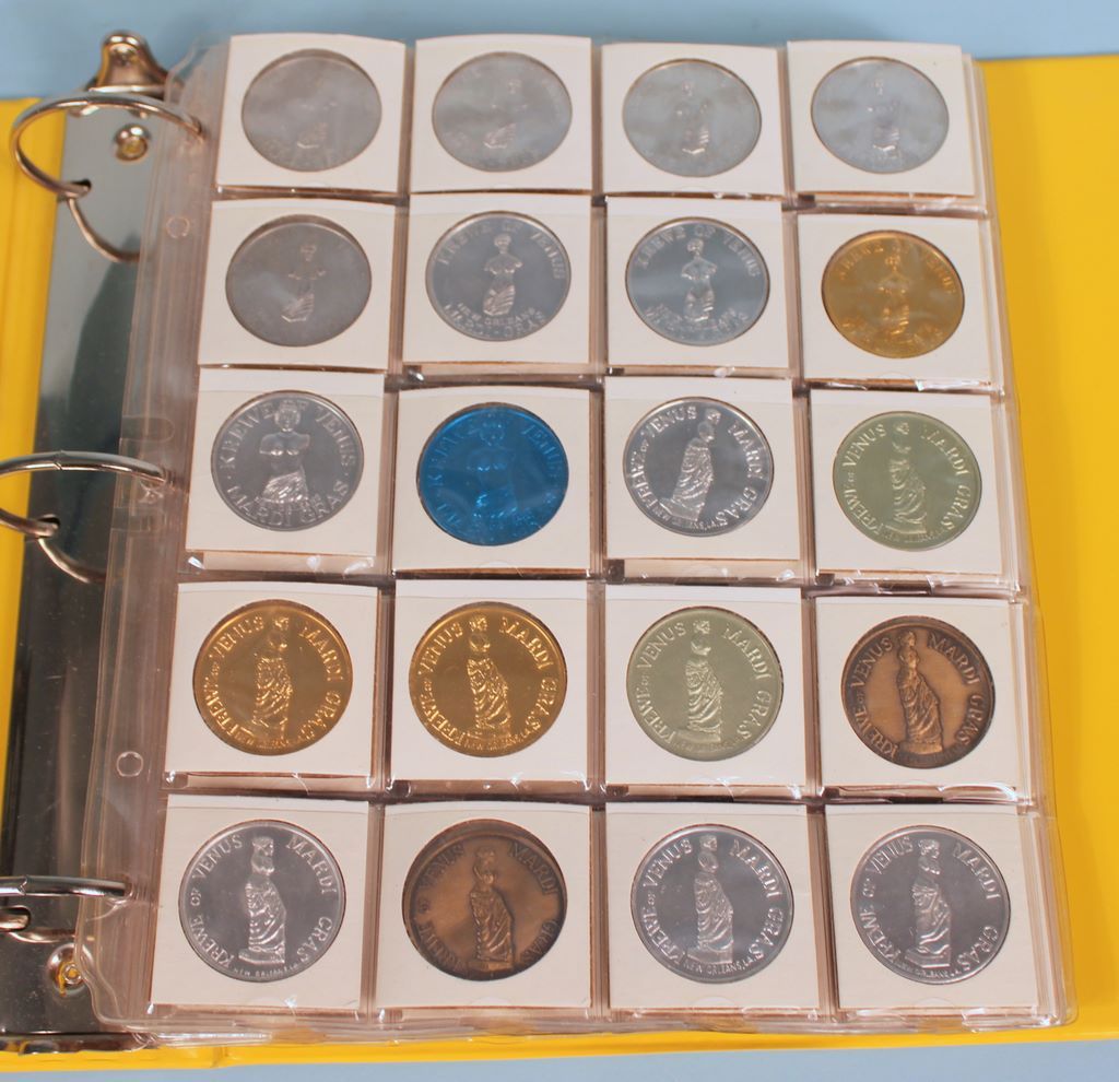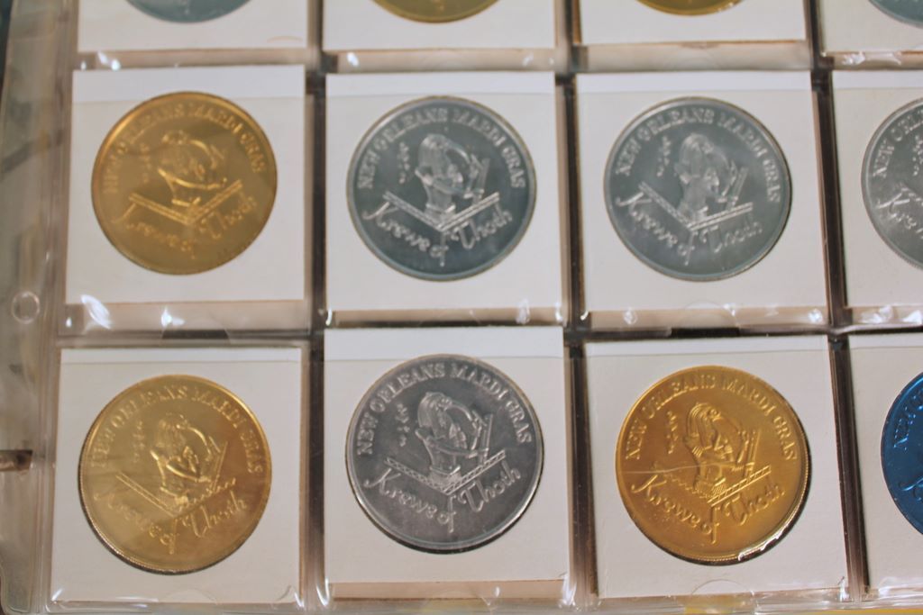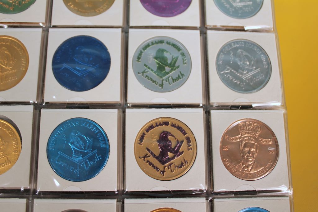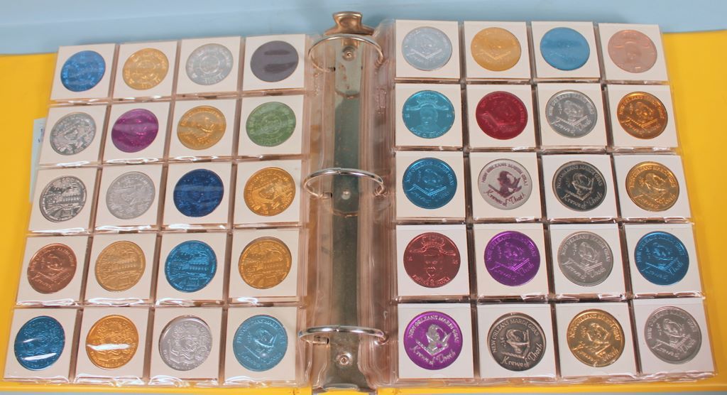 New Orleans New Doubloon Coins. Lot to include two books. One book has approximately. 150 of Venus and Zeus. Second book is approximately 125 multi-colors of Thoth, Tucks and Ulysses. Includes some wooden coins from 1969. New Orleans New Doubloon Coins. Lot to include two books. One book has approximately. 150 of Venus and Zeus. Second book is approximately 125 multi-colors of Thoth, Tucks and Ulysses. Includes some wooden coins from 1969.