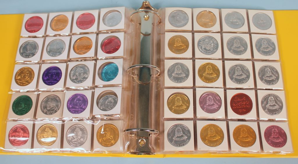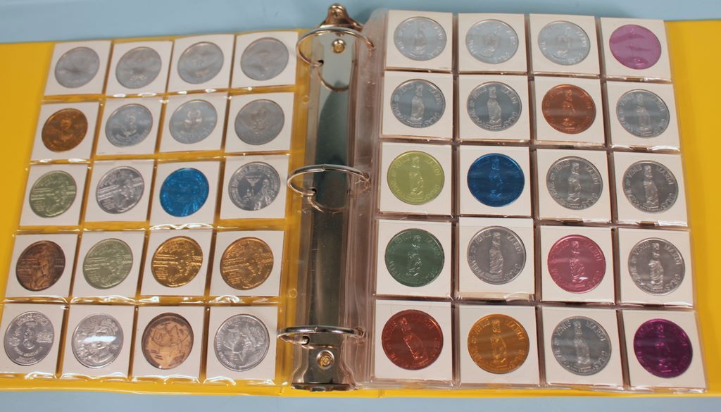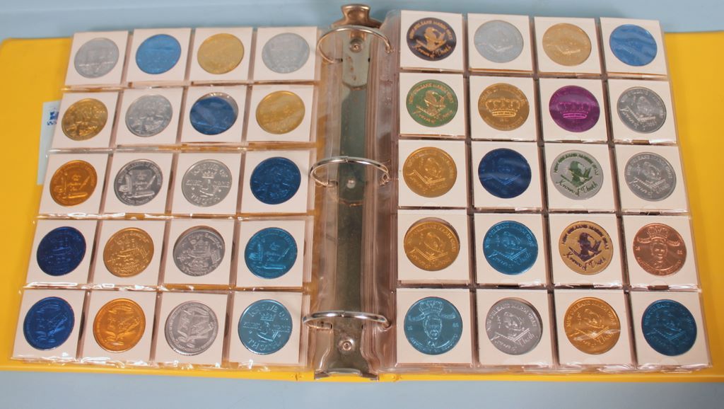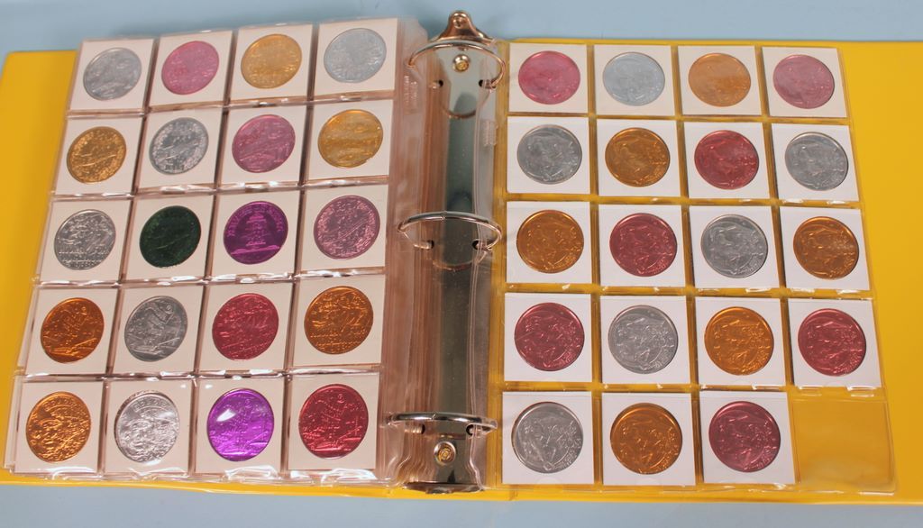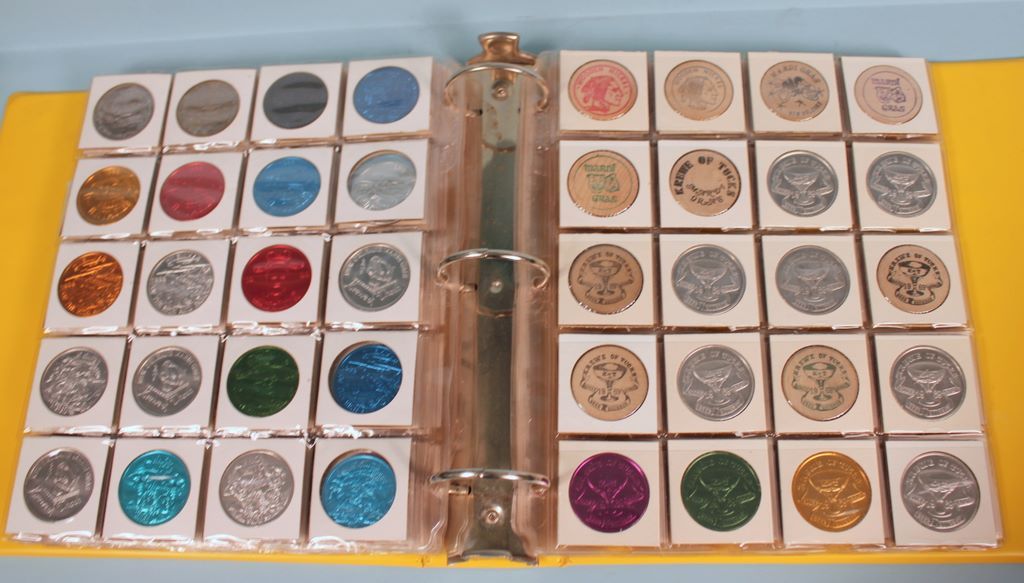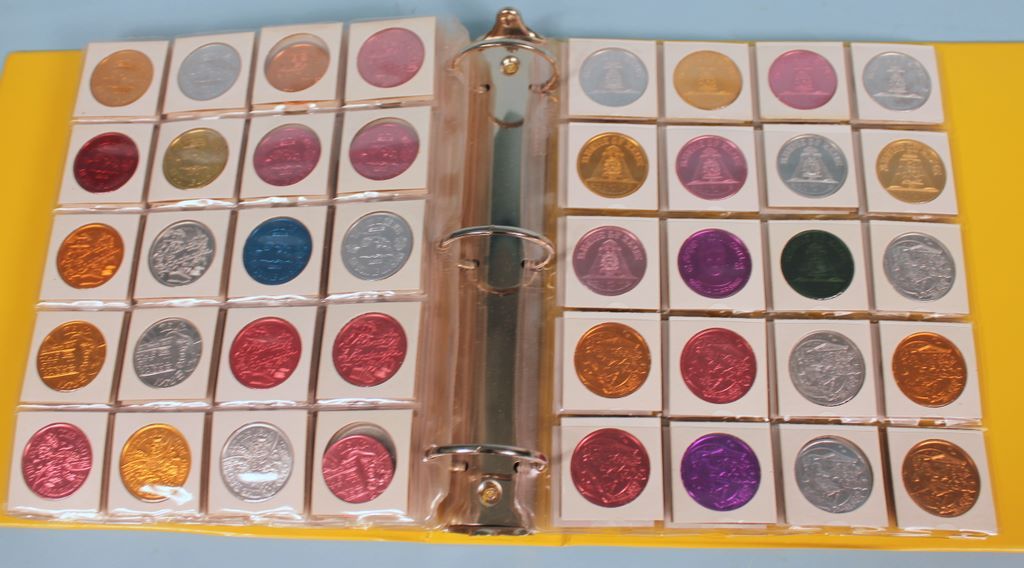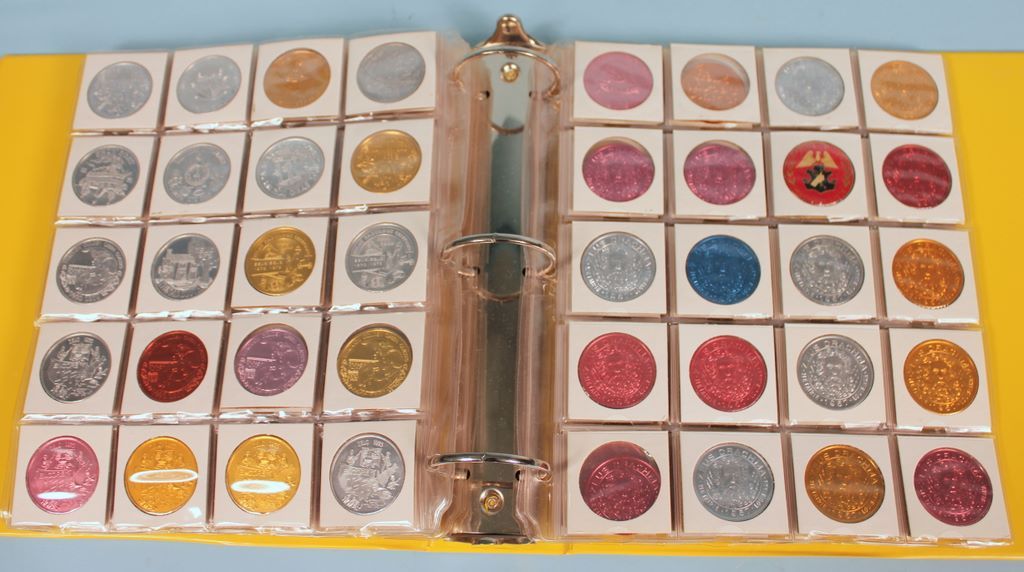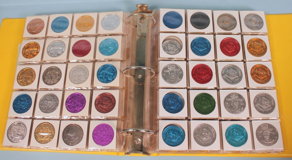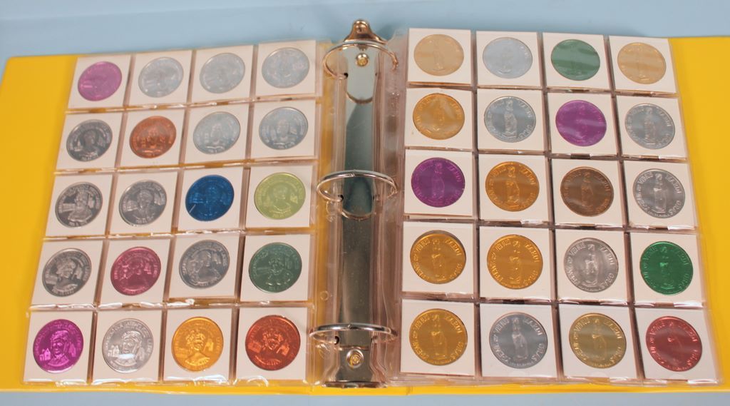 New Orleans New Doubloon Coins. Lot to include two books. One book has approximately. 150 of Venus and Zeus. Second book is approximately 125 multi-colors of Thoth, Tucks and Ulysses. Includes some wooden coins from 1969. New Orleans New Doubloon Coins. Lot to include two books. One book has approximately. 150 of Venus and Zeus. Second book is approximately 125 multi-colors of Thoth, Tucks and Ulysses. Includes some wooden coins from 1969.