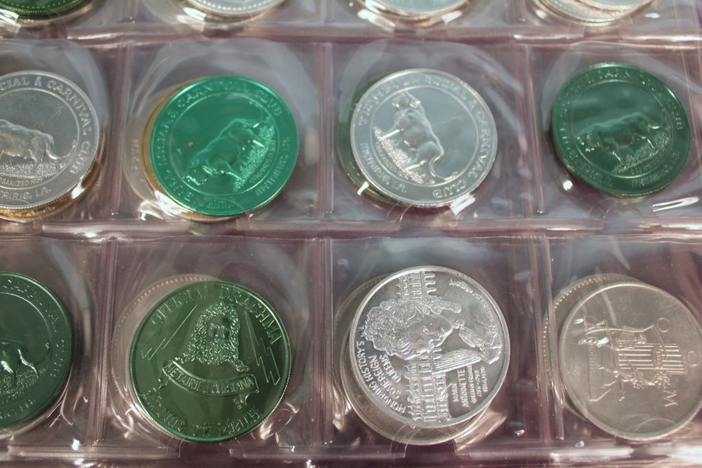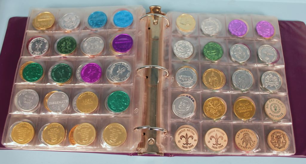 New Orleans New Doubloon Coins. This is a single book lot from 1950, 60, 70. Approximately 325 multi-color and approximately 54 paper notes. St. Patrick parade extras and out of town parades. New Orleans New Doubloon Coins. This is a single book lot from 1950, 60, 70. Approximately 325 multi-color and approximately 54 paper notes. St. Patrick parade extras and out of town parades.