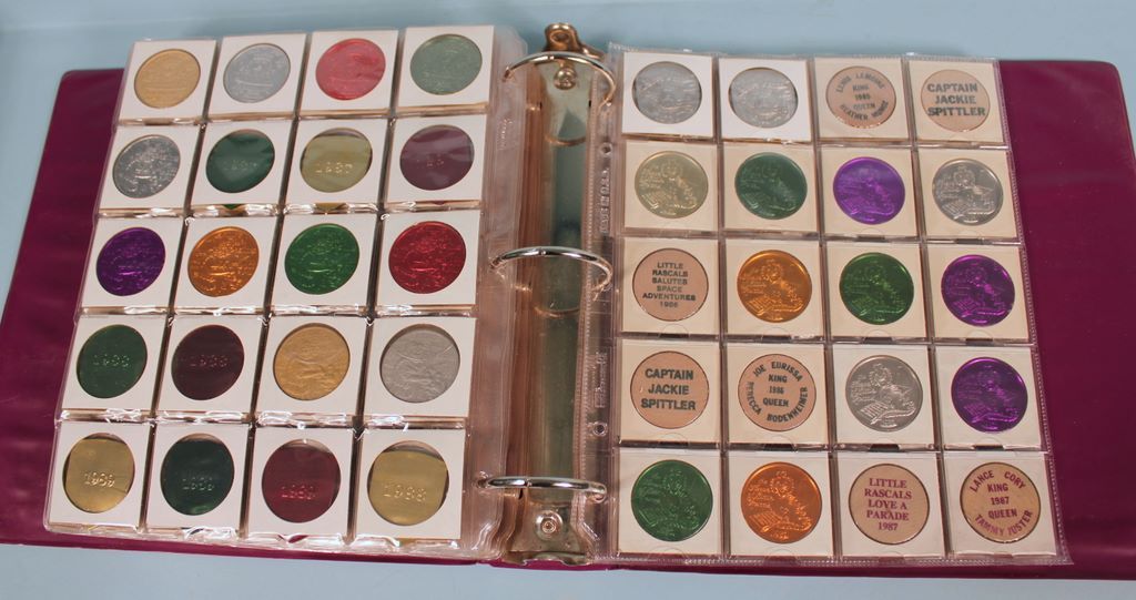 New Orleans New Doubloon Coins. This lot is two books. One approximately 225 of Jefferson, King Arthur and Little Rascals. It has some wooden doubloons. 1988 Captain Jack Spittler. Second books is approximately 235 of Ponchartrain, Poseidon and Rhea. New Orleans New Doubloon Coins. This lot is two books. One approximately 225 of Jefferson, King Arthur and Little Rascals. It has some wooden doubloons. 1988 Captain Jack Spittler. Second books is approximately 235 of Ponchartrain, Poseidon and Rhea.