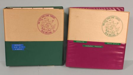 New Orleans Doubloons. Approximately 250 in each book 1960's and 1970's. Hercules and Mecca-Sparta in one book. Second book which also is approximately 250 from 1970's and 1980's, Mercury, Mid City and Minerva. New Orleans Doubloons. Approximately 250 in each book 1960's and 1970's. Hercules and Mecca-Sparta in one book. Second book which also is approximately 250 from 1970's and 1980's, Mercury, Mid City and Minerva.