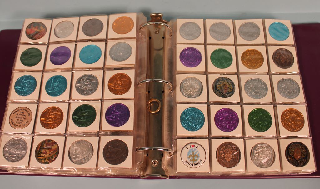 New Orleans Doubloons. Approximately 375 in both books. Lot includes Saturn, Shangri-la, Silenus and Sinbad in one book. 1970's, 80's, 90's. Approximately 250 in this book. Second book is about 250- doubloons, 1970 Endymion New Orleans Doubloons. Approximately 375 in both books. Lot includes Saturn, Shangri-la, Silenus and Sinbad in one book. 1970's, 80's, 90's. Approximately 250 in this book. Second book is about 250- doubloons, 1970 Endymion