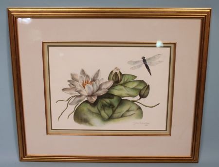 541 Watercolor of "Dragonfly Near a Water Lily", artist signed Dale Barattini