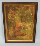 Abstract Print on Board, artist signed Woodbury 92/150. Earthtone colors. Frame 33"h x 25"w. Abstract Print on Board, artist signed Woodbury 92/150. Earthtone colors. Frame 33"h x 25"w.