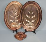 Two Oval Shaped Footed Serving Trays, one Silverplate, one silver on copper along with a small Silverplate divided dish; 16" L., 11 1/2" w.; dish 7" L., 6 1/2" w. Two Oval Shaped Footed Serving Trays, one Silverplate, one silver on copper along with a small Silverplate divided dish; 16" L., 11 1/2" w.; dish 7" L., 6 1/2" w.