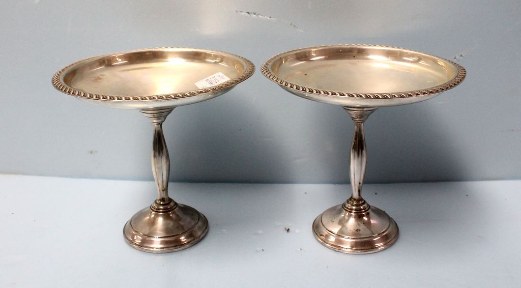 Pair sterling weighted compotes.; 6 1/2" dia., 6" h. Pair sterling weighted compotes.; 6 1/2" dia., 6" h.