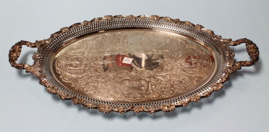 Large silverplate tray, urn mark; 27" Large silverplate tray, urn mark; 27"