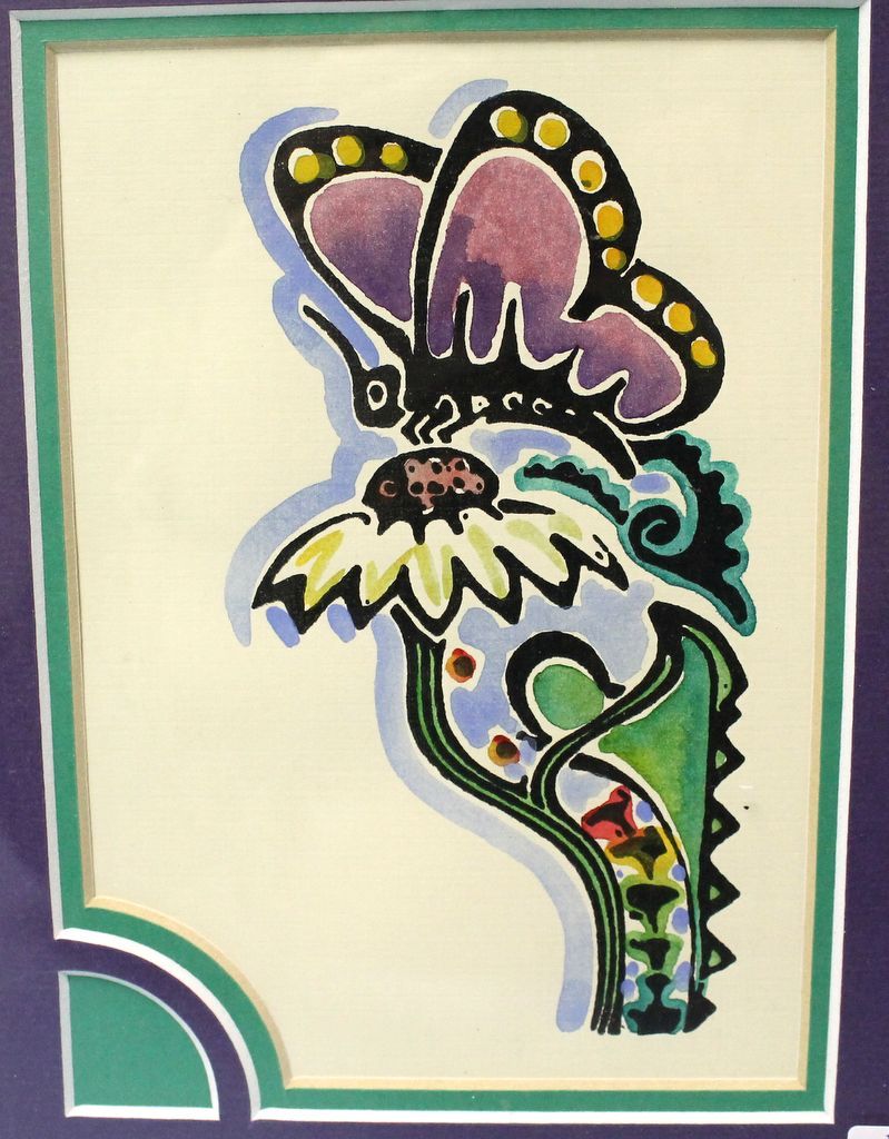 Walter Anderson butterfly and daisy print; 10" w., 12" h. Walter Anderson butterfly and daisy print; 10" w., 12" h.