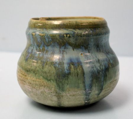 Shearwater marbleized design vase with hole in bottom 3 1/2" dia., 4" h. Shearwater marbleized design vase with hole in bottom 3 1/2" dia., 4" h.
