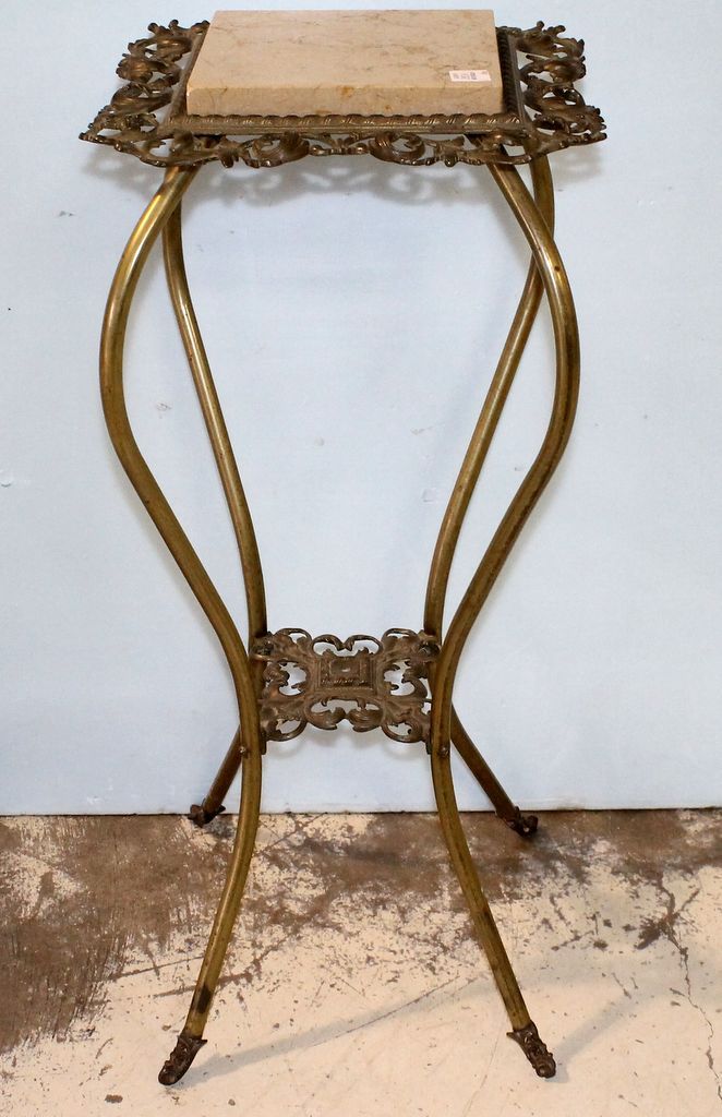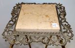 Victorian ornate brass rococo style pedestal with marble insert.; 13" square, 32" h. Victorian ornate brass rococo style pedestal with marble insert.; 13" square, 32" h.