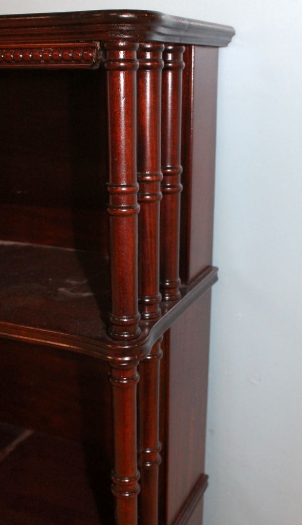 Mahogany five shelf bookcase with brass paw feet.; 29" w., 9 1/2" d., 50 1/2" h. Mahogany five shelf bookcase with brass paw feet.; 29" w., 9 1/2" d., 50 1/2" h.