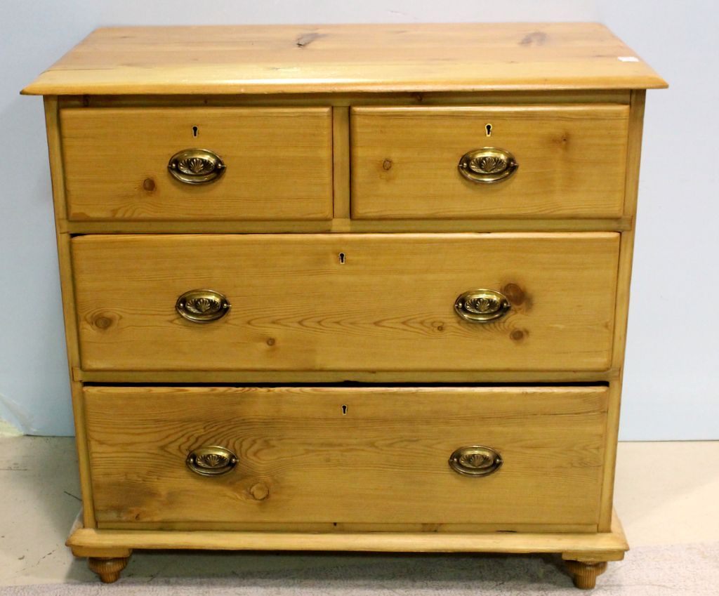 Antique pine welsh dresser. Upper section has three shelves, painted green interior half circle decoration. Bottom section has four drawers, four doors.; 72 1/2" w., 19" d., 86 1/2" h. Antique pine welsh dresser. Upper section has three shelves, painted green interior half circle decoration. Bottom section has four drawers, four doors.; 72 1/2" w., 19" d., 86 1/2" h.