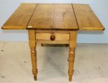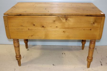 Antique pine drop leaf table with turned legs.; 23" w., 42" d., 30" h.; 2- 11" leaves Antique pine drop leaf table with turned legs.; 23" w., 42" d., 30" h.; 2- 11" leaves