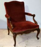 Mahogany French carved arm chair.; 39" h. Mahogany French carved arm chair.; 39" h.